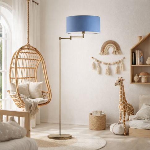 CANCUN to designerska lampa podłogowa, która zapewnia nie tylko wyjątkowy design, ale także komfort użytkowania. Wyposażona we włącznik nożny umożliwia wygodne sterowanie światłem bez konieczności schylania się, co jest szczególnie praktyczne w codziennym użytkowaniu. Lampa stojąca z niebieskim abażurem ma imponującą wysokość 155 cm, dzięki czemu doskonale sprawdzi się jako lampa podłogowa do czytania regulowana – idealna do wieczornego relaksu z książką zarówno w salonie, jak i w sypialni. Abażur, wykonany z najwyższej jakości holenderskiej tkaniny podklejanej folią PVC, nie tylko prezentuje się elegancko, ale również skutecznie rozprasza światło, tworząc przytulną atmosferę w pomieszczeniu.