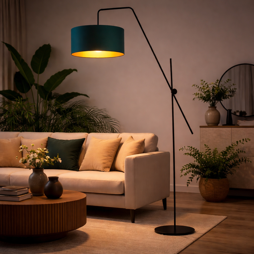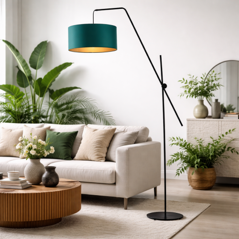 Lampa stojąca z zielonym butelkowym abażurem ze złotym wnętrzem BILBAO GOLD to wyjątkowa propozycja dla osób, które cenią nowoczesność i funkcjonalność w jednym. Dzięki ruchomemu ramieniu, lampa wyróżnia się spośród innych modeli, umożliwiając precyzyjne ukierunkowanie światła. To rozwiązanie sprawia, że lampy podłogowe z regulowanym ramieniem doskonale sprawdzają się w każdym wnętrzu, oferując elastyczność, którą trudno znaleźć w klasycznych modelach. Abażury w kolekcji GOLD posiadają złote wnętrze – w wersji białej z połyskującą powierzchnią, a w innych kolorach (czarny, szary, granatowy, zieleń butelkowa) z matowym wykończeniem. To połączenie funkcjonalności i elegancji, które doda wnętrzu niepowtarzalnego charakteru.