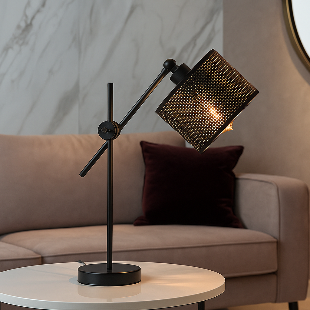 Jesteś fanem ciemnych mebli i dodatków? Lubisz aranżować wnętrza na zasadzie kontrastu? Dla fanów takich aranżacji przygotowaliśmy czarną lampkę stołową MALI AŻUR. Jej minimalistyczny design i prosta konstrukcja sprawiają, że będzie to Twoja ulubiona lampka nocna. Ale to nie wszystko! Częstochowski producent oświetlenia LYSNE.PL zawsze proponuje modele zachwycające wyjątkowym stylem i jakością wykonania. Nowoczesna lampka na biurko MALI AŻUR składa się z dwóch, regulowanych ramion. Jej zwieńczeniem jest siateczkowy abażur w kształcie walca o średnicy 17,5 cm i wysokości 12 cm. Do wyboru mamy dwa warianty wykończenia klosza: czarny i czarny ze złotym wnętrzem. Ponadto, proponujemy aż 3 warianty kolorystyczne stelaża do wyboru: biały, srebrny oraz czarny. Niewątpliwym atutem funkcjonalnej lampki nocnej jest jej możliwość regulacji w zakresie wysokości i szerokości. Ten model oświetlenia biurkowego jest przystosowany do żarówki z gwintem E27 i źródeł światła o klasach energetycznych od A do G i żarówek LED.