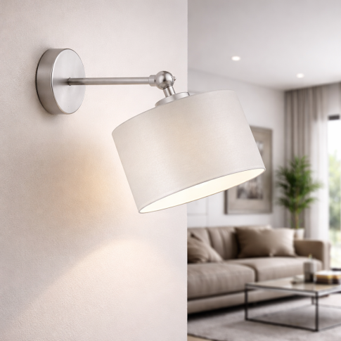 Biały kinkiet z abażurem sprawdzi się przede wszystkim w nowoczesnych aranżacjach. Będzie ich dobrym dopełnieniem. Nie przyćmi uroku pozostałych dekoracji, a wręcz przeciwnie — jeszcze lepiej je wyeksponuje. Kinkiet ścienny regulowany do czytania TETE to także dobry wybór do hotelowych pokoi i korytarzy. Jest niewielka, dlatego nie zajmuje na ścianie dużo miejsca, a wyraźne światło wydobywające się spod klosza doskonale rozświetli przestrzeń przy łóżku i drogę do windy. Zastanawiasz się, gdzie można zamontować kinkiet TETE? W przytulnej sypialni, pokoju dziecka lub domowym kąciku czytelniczym. Niezaprzeczalnym atutem oprawy jest regulowane ramię, które ułatwia ustawienie kąta padania światła. Kinkiet możemy regulować w górę lub w dół w zależności od efektu jaki chcemy uzyskać. Oprawa dostosowana jest do żarówek z tzw. dużym gwintem E27 o mocy max. 60W a także do żarówek ledowych i energooszczędnych o klasach energetycznych od A do G.