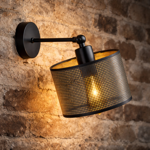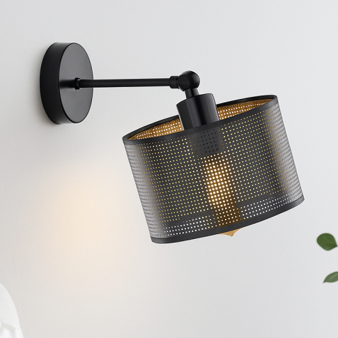 Łączenie klasycznych dekoracji z nowoczesną awangardą to Twój ulubiony sposób na udaną aranżację wnętrz? Jeśli tak, to doskonale w ten trend wpisuje się loftowy kinkiet ścienny TETE AŻUR od polskiego producenta oświetlenia LYSNE.PL. To oświetlenie do salonu prezentuje się niezwykle elegancko w każdym pomieszczeniu, a przy tym zachwyca swoim oryginalnym designem. Niewątpliwie na uwagę zasługuje ażurowy abażur w kształcie walca o średnicy 17,5 cm i wysokości 12 cm. Do wyboru mamy dwa warianty kolorystyczne klosza – czarny oraz czarny ze złotym wnętrzem. Światło przez abażur przebija się bardzo delikatnie wprowadzając wyjątkową atmosferę w pokoju. Uzupełnieniem tej minimalistycznej lampki ściennej jest klasyczny stelaż o prostej konstrukcji, który dostępny jest w 3 klasycznych kolorach: białym, srebrnym oraz czarnym. To nie koniec zalet tego nowoczesnego kinkietu ściennego! Lampa ścienna ma regulowane ramię, co pozwala ustawić kąt padania światła zgodnie z własnymi preferencjami. Kinkiet na wysięgniku TETE AŻUR jest dostosowany do jednego źródła światła – żarówki mocowanej na tzw. duży gwint E27 lub żarówek ledowych i energooszczędnych odpowiadających tradycyjnym 60W.