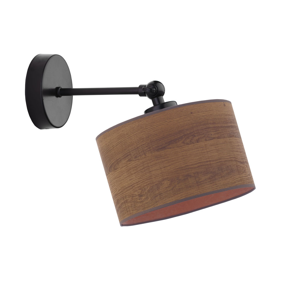Metalowa lampa ścienna z regulowanym ramieniem - poznaj kinkiet TETE z fornirowym kloszem