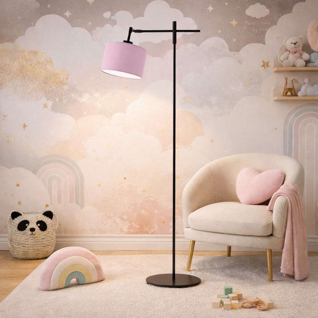 Ruchoma lampa podłogowa dla dzieci SERES nowoczesna lampa stojąca z abażurem w kolorze jasnofioletowym
