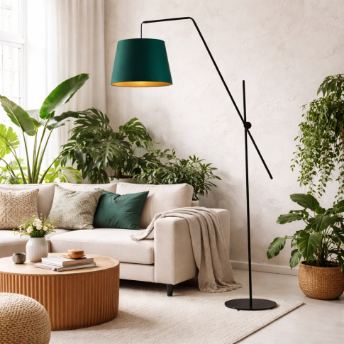 Lampa podłogowa na ruchomym wysięgniku VIGO GOLD jest idealna dla osób, które cenią sobie oryginalne i stylowe oświetlenie. Jej smukła, przegubowa konstrukcja sprawia, że staje się nie tylko praktycznym elementem wyposażenia, ale także intrygującą ozdobą wnętrza. Wysokość i szerokość lampy można dowolnie regulować, co pozwala dostosować ją zarówno do salonu jak i bardziej kameralnych przestrzeni jak sypialnia czy kącik do czytania. Elegancki abażur w kształcie stożka (wysokość 28 cm, średnica u dołu 37 cm) w połączeniu ze złotym wnętrzem to nie tylko doskonała gra światła, ale również kwintesencja luksusu w najlepszym stylu.