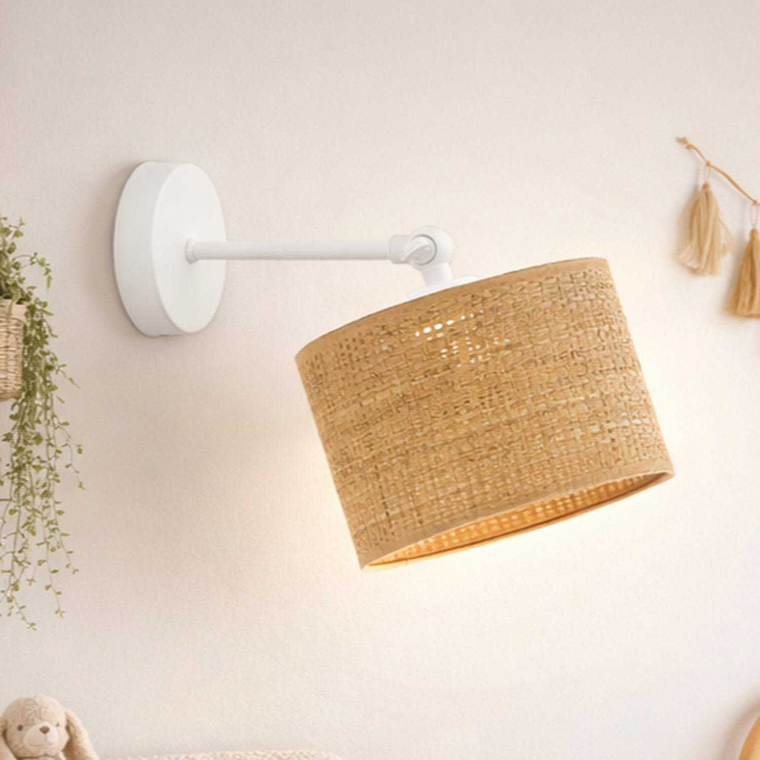 Kinkiety z rattanowym kloszem charakteryzują się nie tylko pięknym wyglądem, ale także kilkoma praktycznymi cechami. Niezaprzeczalnym atutem TETE BOHO jest możliwość regulacji kąta padania światła za pomocą ruchomego ramienia. Dzięki temu łatwo jest dostosować oświetlenie do konkretnych potrzeb i preferencji użytkownika. Rattanowy klosz designerskiego kinkietu można swobodnie regulować w górę lub w dół, co pozwoli uzyskać pożądany efekt oświetleniowy w pomieszczeniu. Beżowy kinkiet boho został zaprojektowany tak, aby był kompatybilny z różnymi rodzajami żarówek. Można używać żarówek z tzw. dużym gwintem E27 o maksymalnej mocy 60W, jak również żarówek ledowych i energooszczędnych o różnych klasach energetycznych od A do G. Dzięki temu możesz wybierać spośród różnych opcji oświetleniowych, uwzględniając swoje preferencje estetyczne oraz dbałość o środowisko.