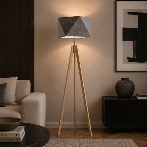 To doskonały wybór dla osób poszukujących drewnianej lampy stojącej do salonu, sypialni lub przestrzeni wypoczynkowej. Konstrukcja na trzech nogach zapewnia stabilność oraz lekkość wizualną, co sprawia, że lampa świetnie prezentuje się zarówno w większych jak i mniejszych pomieszczeniach. Lampa stojąca trójnóg to obecnie jedno z najczęściej wybieranych rozwiązań w nowoczesnych wnętrzach.
