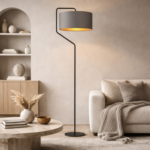 TESALLIA GOLD — elegancka lampa podłogowa z szarym abażurem ze złotym wnętrzem