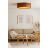 DUBAJ ECO z abażurem o średnicy 60 cm to lampa, która zachwyca równowagą między estetyką a praktycznością. Dostępna jest w kilku modnych kolorach – orzechowy, dąb sonoma i kasztanowy – dzięki czemu dopasowuje się do każdego wnętrza. Jej światło rozchodzi się ku dołowi, tworząc miękką, równomierną poświatę, idealną jako oświetlenie w stylu skandynawskim. Taka forma sprawia, że plafon doskonale oświetla pomieszczenia o różnym przeznaczeniu – od salonu i sypialni, po biuro, jadalnię czy przedpokój. Stonowana kolorystyka abażura wprowadza do przestrzeni harmonię i spokój, a subtelne światło podkreśla naturalne barwy drewna i tkanin. To lampa sufitowa LED, która doskonale współgra z innymi elementami wyposażenia – oświetleniem w stylu skandynawskim tworząc spójne i stylowe oświetlenie wewnętrzne.