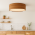 Nowoczesna plafoniera DUBAJ ECO fi 60 cm to propozycja dla miłośników minimalistycznego designu i naturalnych akcentów we wnętrzu. Projekt polskiego producenta LYSNE.PL wyróżnia się prostą, elegancką formą oraz wykonaniem z wysokiej jakości materiałów. Cylindryczny abażur o średnicy 60 cm powstał z tworzywa PVC imitującego fornir z tłoczonym wzorem drewnianych słojów. Taka powierzchnia delikatnie przepuszcza światło uwydatniając naturalną strukturę drewna i nadając wnętrzu przytulnego charakteru. Abażur przylega do sufitu, pozostawiając około 2-3 cm przestrzeni, co zapewnia lekki efekt wizualny i lepszą cyrkulację powietrza wokół źródeł światła. Plafon sufitowy doskonale sprawdzi się jako nowoczesna lampa sufitowa do salonu, plafony do jadalni, lampy kuchenne czy lampy przysufitowe do sypialni tworząc spójną kompozycję z wystrojem w stylu skandynawskim, rustykalnym lub boho.