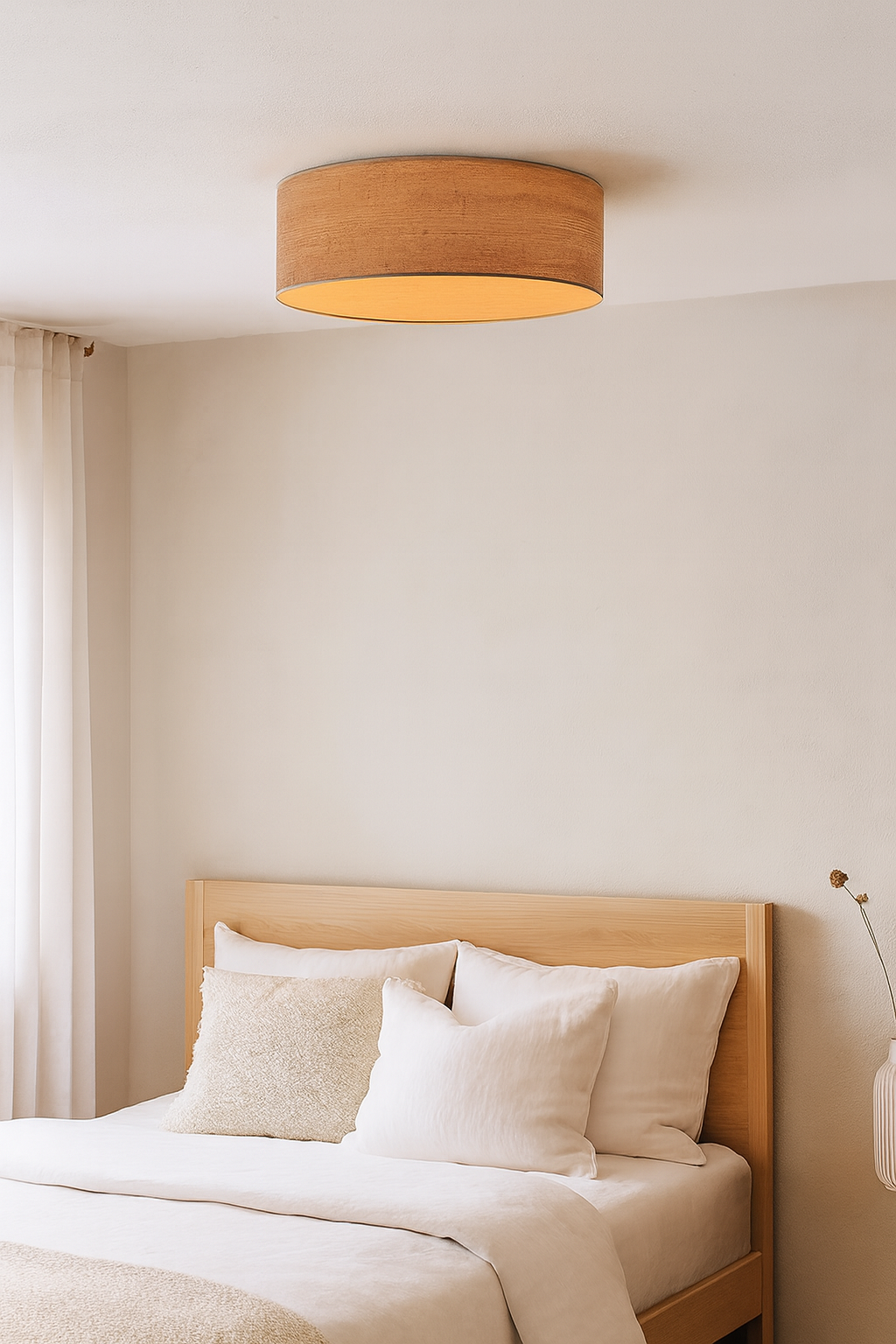 Nowoczesna plafoniera DUBAJ ECO to połączenie minimalistycznego designu i funkcjonalności w najlepszym wydaniu. Ten elegancki plafon sufitowy w stylu skandynawskim został zaprojektowany przez polskiego producenta LYSNE.PL, który słynie z dbałości o detal i wysokiej jakości wykonania. Cylindryczny abażur o średnicy 50 cm powstał z tworzywa PVC imitującego fornir z wytłoczonym wzorem drewnianych słojów, co nadaje lampie subtelności i lekkości. Abażur przylega do sufitu, pozostawiając ok. 1-2 cm przerwy, co nadaje mu efekt „unoszenia się” i umożliwia swobodny przepływ powietrza. Dzięki kilku kolorom do wyboru – dąb sonomaorzechowy i kasztanowy – plafon doskonale dopasujesz do swojego wnętrza. To idealna lampa sufitowa do salonu, jadalni, sypialni lub kuchni, która wprowadza ciepło, harmonię i przytulną atmosferę w stylu skandynawskim, boho lub rustykalnym.