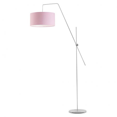 Srebrna lampa stojąca na wysięgniku z różowym abażurem do pokoju dziewczynki BILBAO