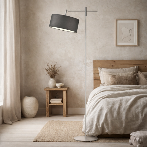 Lampa stojąca z abażurem MELTON okaże się także strzałem w dziesiątkę do pomieszczeń o loftowym i minimalistycznym wyglądzie. Minimalistyczna konstrukcja i tkaninowy klosz bez zbędnych ozdobników zachwyci fanów industrialnych wnętrz. Do tego typu mieszkań polecamy wybrać czarną lampę podłogową z ciemnym lub mocnym abażurem. Efektowną propozycją od lysne.pl jest także klosz w nowoczesnych kolorach typu musztardowy czy zieleń butelkowa. MELTON jako lampa podłogowa z ruchomym ramieniem kompatybilna będzie z żarówkami o mocy 60W montowanych na tzw. duży gwint E27. Można także do niej wkręcić żarówki energooszczędne LED w klasach energetycznych od A do G.