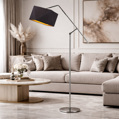 Odkryj fascynujący świat oświetlenia z lampą podłogową na wysięgniku. COLMA to niezwykłe źródło światła, które nie tylko rozświetli Twoje pomieszczenie, ale również wprowadzi do niego nutę elegancji. Abażurowa lampa stojąca emanuje przyjemnym światłem, kształtując przy tym przestrzeń wokół siebie odbijając złote refleksy. To coś więcej niż lampa — to prawdziwe dzieło sztuki użytkowej. Funkcjonalna konstrukcja oprawy przykuwa uwagę swoim minimalizmem zyskując jednocześnie przy bliższym poznaniu. Na szczególną uwagę zasługuje klosz lampy przypominający formą diament. Wykonany z holenderskiej tkaniny tekstylnej podklejony złotą amplą, by jeszcze piękniej elegancka lampa stojąca prezentowała się we wnętrzu. Konstrukcja COLMY przykuwa uwagę swoją prostotą, a jednocześnie zyskuje charakter dzięki designerskiemu abażurowi. Regulowane ramię, minimalistyczna podstawa i oryginalny kształt klosza łączą się, tworząc harmonijną kompozycję z nutą współczesnego stylu.