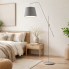 Srebrna lampa stojąca z szarym abażurem w stylu skandynawskim VIGO lampa podłogowa z ruchomym ramieniem