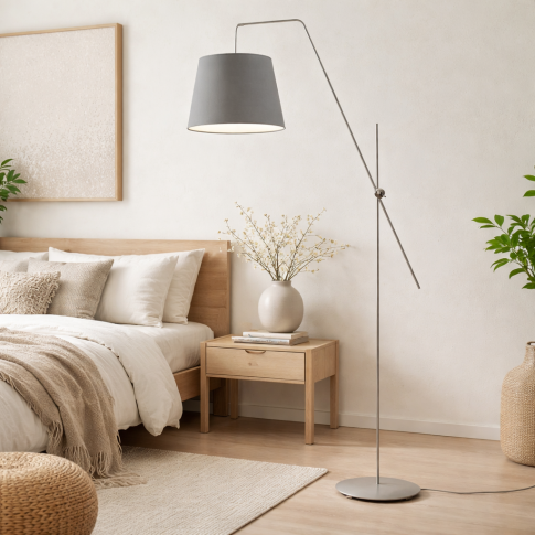Niebanalny kształt lampy stojącej z regulowanym ramieniem VIGO czyni z niej doskonałe oświetlenie we wnętrzach, w których dominuje styl nowoczesny, skandynawski, a nawet w loftach. To zaskakujące, że jedna lampa podłogowa pasuje do kilku, różnych aranżacji wnętrz. Jeśli marzysz o loftowych dodatkach to wtedy wybierz czarny stelaż i grafitowy abażur. Natomiast w stylu nowoczesnym lepiej sprawdzi się srebrna podstawa i abażur w kolorze zieleni butelkowej, a w skandynawskim na uwagę zasługuje biały kolor konstrukcji i musztardowy klosz. Jeden model lampy podłogowej na wysięgniku VIGO daje ogrom możliwości aranżacyjnych. Zdecyduj się na swój ulubiony!