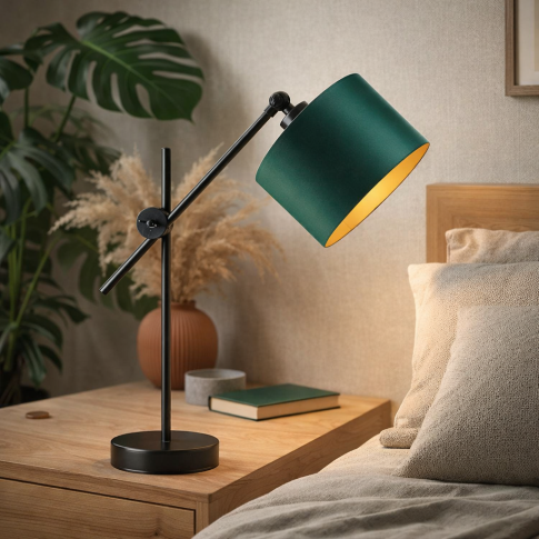 Regulowana lampka stołowa z abażurem w kolorze butelkowej zieleni to prawdziwy mistrz w sztuce dostosowywania się do Twoich potrzeb. Jej regulowane ramię pozwala na dowolne kształtowanie światła, aby perfekcyjnie dostosować je do naszych aktualnych potrzeb. Czy to podczas nocnego czytania ulubionej książki czy też przy pracy nad kreatywnym projektem – oprawa zawsze oświetli dokładnie to, co powinno być w centrum uwagi. Jej prosta, lecz funkcjonalna konstrukcja z regulowanymi wymiarami (wysokość - około 50 cm, szerokość - około 20 cm) skrywa w sobie nieskończone możliwości aranżacyjne, oferując nie tylko światło, ale i stylowy sposób na wyrażenie siebie. Dodatkowo oprócz 3 kolorów podstawy do wyboru jest także barwa kloszy spośród 5 wariantów - białego, szarego, zieleni butelkowej, granatowego i czarnego.