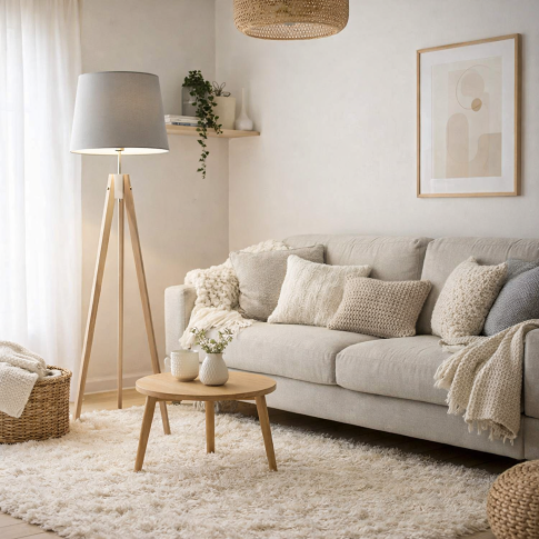 Lampa stojąca na drewnianych nogach – mnogość wyboru kolorystyki