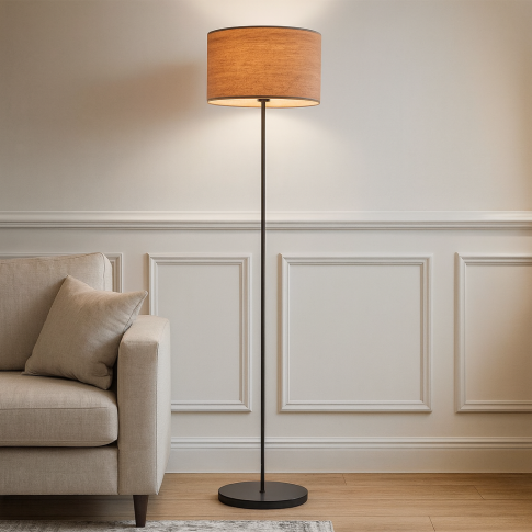 Nowoczesna lampa podłogowa z abażurem WERONA ECO to wszechstronny element oświetlenia, który świetnie sprawdzi się w różnych typach wnętrz – od domowych przestrzeni po miejsca użytkowe. Dzięki swojej subtelnej, minimalistycznej formie, lampa znakomicie uzupełni aranżację w salonie tworząc ciepły, nastrojowy klimat podczas wieczornego relaksu. Umieszczona obok sofy, fotela czy stolika kawowego stanowi idealne dodatkowe źródło światła, które jednocześnie dekoruje przestrzeń. WERONA ECO wpisując się w rolę lampy stojącej do sypialni stanie się praktycznym i stylowym dodatkiem, zapewniając przyjemne, rozproszone światło sprzyjające odprężeniu przed snem. Może pełnić funkcję lampy podłogowej do czytania przy łóżku lub w okolicy toaletki, gdzie doda przytulności i intymnej atmosfery. Jej delikatny blask nie tylko wypełnia przestrzeń, ale także harmonijnie współgra z resztą wyposażenia podkreślając skandynawski lub rustykalny charakter wnętrza. Lampa stojąca w stylu skandynawskim WERONA ECO to również doskonałe rozwiązanie dla biura. Jej elegancki ale nienachalny wygląd sprawia, że świetnie odnajduje się w formalnych przestrzeniach. Lampa stojąca w biurze stworzy komfortowe warunki do pracy szczególnie w strefach, gdzie potrzebne jest dodatkowe oświetlenie, np. przy biurku lub w strefie relaksu. Jej nowoczesny design wpisuje się w trendy minimalistyczne, dodając profesjonalnego i stylowego akcentu do miejsca pracy. Jej wszechstronność i prostota czynią ją nieocenionym dodatkiem w każdej przestrzeni – zarówno w domowych zaciszach, jak i profesjonalnych wnętrzach komercyjnych.