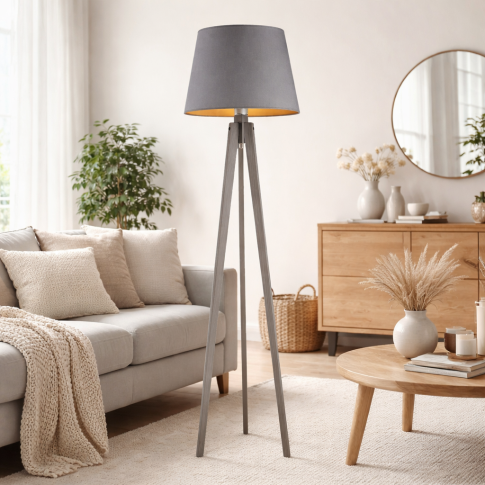 Szarą lampę podłogową z abażurem możemy ulokować w wielu pomieszczeniach, dodając subtelny akcent ale i jednocześnie funkcjonalne oświetlenie każdemu wnętrzu. W sypialni może pełnić rolę lampy stojącej do czytania w łóżku lub relaksującego oświetlenia z ciepłą złotą poswiatą. W salonie może być umieszczona obok fotela czy sofy jako dodatkowe oświetlenie lub możemy użyć jej do stworzenia nastrojowej atmosfery pochmurnego wieczoru. W biurze lub gabinecie może wspomagać koncentrację i wydajność podczas pracy, oświetlając biurko lub przestrzeń do pracy czy nauki. Drewniana lampa stojąca w dziecięcym pokoju może służyć jako delikatne oświetlenie nocne, które zapewnia poczucie bezpieczeństwa. W przestrzeniach komercyjnych, takich jak recepcje, poczekalnie lub kawiarnie, lampa stojąca z szarym abażurem ze złotym może być eleganckim elementem dekoracyjnym, który podkreśli przytulność miejsca ale także i podkreśli jego wytworny charakter.