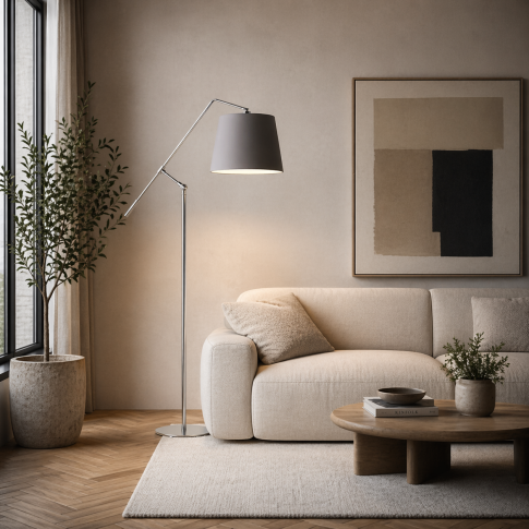 FOYA – lampa stojąca z regulowanym ramieniem do nowoczesnych wnętrz