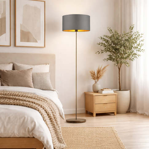 Minimalistyczna lampa stojąca WERONA GOLD to prawdziwa perła wśród nowoczesnego oświetlenia, która swoim wyszukanym designem podbija serca miłośników elegancji i oryginalnych wnętrz. Jej smukła forma idealnie komponuje się z nowoczesnym wystrojem, gdzie króluje niekonwencjonalne umeblowanie i odważne dekoracje. Złote wnętrze abażura dodaje lampie podłogowej wyjątkowego blasku, który rozprasza światło w sposób niezwykle przyjemny i efektowny. WERONA GOLD to lampa stojąca z szarym abażurem, która podkreśli charakter każdego pomieszczenia, wprowadzając do wnętrza nutę luksusu.