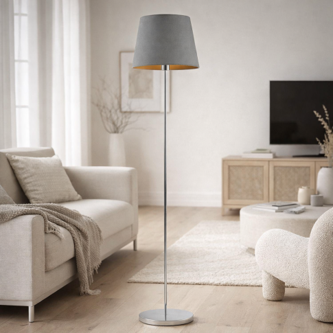 Minimalistyczna lampa podłogowa z abażurem VASTO GOLD to doskonała propozycja dla tych, którzy szukają połączenia nowoczesnego designu z funkcjonalnością. Lampy stojące są wyjątkowo przyjemne w obsłudze, dzięki możliwości łatwego przestawiania ich w dowolne miejsce. Oświetlają dokładnie ten obszar, który chcemy podkreślić, co czyni je niezwykle praktycznym rozwiązaniem zarówno w salonie, sypialni jak i biurze. VASTO GOLD przykuwa wzrok przede wszystkim swoim oryginalnym abażurem ze złotym wnętrzem – minimalistycznym, a jednocześnie eleganckim, stanowiącym dekoracyjny akcent w każdym wnętrzu.