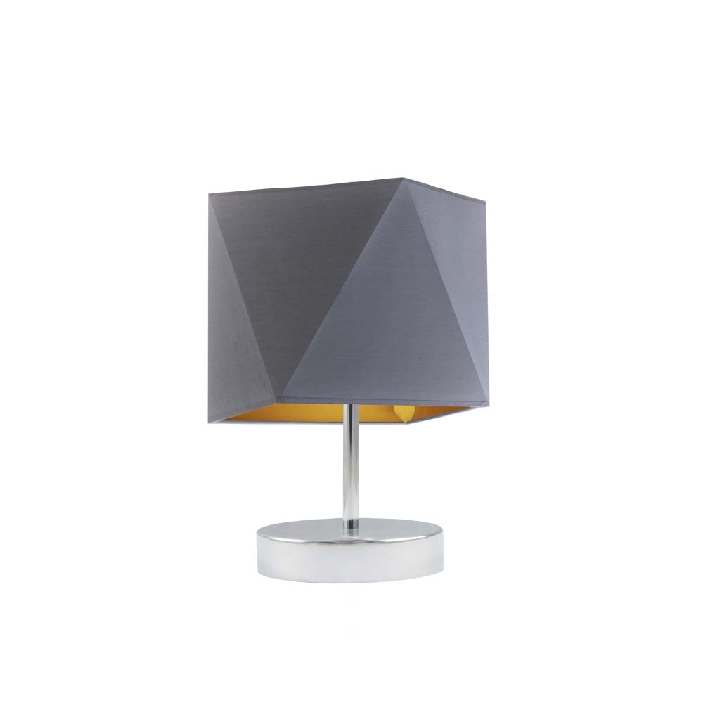 Szara lampa stołowa w stylu skandynawskim PASADENA GOLD z abażurem
