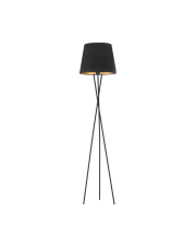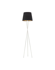Metalowa lampa podłogowa na trójnogu TOKIO VELUR z abażurem ze złotym wnętrzem
