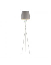 Lampa stojąca na trójnogu do salonu TOKIO VELUR z tkaninowym abażurem