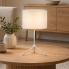 Skandynawska lampa nocna ASPEN – lampa stołowa na trójnogu z abażurem | nowoczesna lampka do sypialni