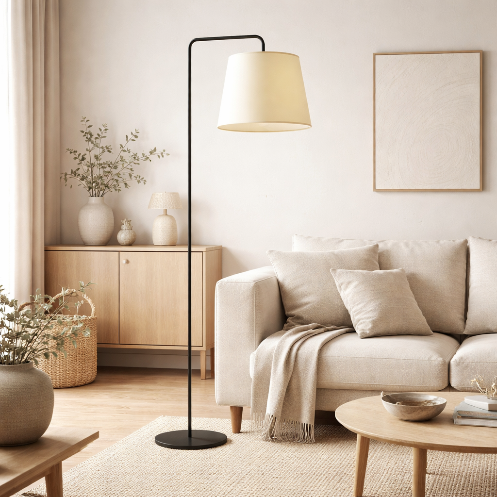 Klasyczna lampa stojąca ze stożkowym abażurem to wyrafinowane i eleganckie rozwiązanie oświetleniowe. Projekt oprawy łączy w sobie nowoczesny minimalizm z funkcjonalnością, czyniąc ją idealnym dodatkiem do każdego wnętrza. Nowoczesna lampa stojąca charakteryzuje się stabilną, okrągłą podstawą oraz prostym ramieniem, które delikatnie zakrzywia się u góry tworząc harmonijną linię. Abażur w kształcie stożka wykonany jest z najwyższej jakości holenderskiej tkaniny tekstylnej, wzmocnionej folią PCV, podkreślającą trwałość i estetykę. Tkaninowy klosz otula konstrukcję lampy, dodając jej lekkości i ciepła, co przełamuje surowość prostego designu. Użytkownicy mają możliwość wyboru koloru abażura oraz podstawy, dostosowując lampę do indywidualnych potrzeb i stylu wnętrza. Lampa podłogowa do czytania RIJAD emituje światło zarówno w górę jak i w dół, tworząc przyjemne refleksy świetlne na ścianach i podłodze. Dla zwiększenia komfortu użytkowania, designerska lampa stojąca została wyposażona w praktyczny włącznik nożny, umożliwiający łatwe włączanie i wyłączanie światła. RIJAD jako unikatowa lampa podłogowa to doskonały przykład polskiej jakości i nowoczesnego designu oferując użytkownikom nie tylko praktyczne źródło światła, ale także stylowy element dekoracyjny.