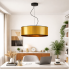 Czarna lampa wisząca ze złotym abażurem HAJFA MIRROR to idealna propozycja dla osób, które cenią innowacyjne rozwiązania i nowoczesny design. Oświetlenie wyposażone jest w czarną podsufitkę z ozdobnym zaplecionym przewodem zasilającym, które prezentuje się niezwykle lekko i finezyjnie. Zawieszenie można regulować zgodnie z wymaganiami wnętrza podczas montażu, co dodaje wiele możliwości aranżacyjnych. Największą uwagę przyciąga jednak abażur – cylindryczny klosz o średnicy 60 cm wykonany z połyskującej złotej folii. Dizajnerska lampa wisząca z abażurem HAJFA MIRROR odznacza się minimalistycznym designem, dlatego doskonale wpasuje się w różne style wnętrzarskie. Bezkonkurencyjnie wypełni swoje zadanie jako lampa wisząca z regulacją do salonu, nowoczesny żyrandol do sypialni czy lampa kuchenna. Prosta forma bez zbędnych elementów dekoracyjnych pozwala na łatwe czyszczenie oprawy.