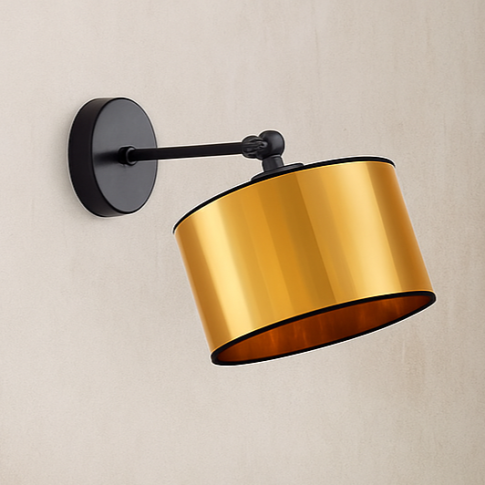 Czarny kinkiet ze złotym kloszem TETE to prawdziwa perełka w świecie oświetlenia, doskonale wpisuje się w estetykę stylu loft. Nowoczesny design i proste linie oprawy zachwycają, odzwierciedlając charakterystyczne cechy industrialnego stylu. Proste linie i funkcjonalność kinkietu są stworzone dla loftowych przestrzeni, gdzie surowość i prostota spotykają się z nowoczesnym designem. Kolorystyka tylko wzmacnia ten efekt, nadając czarnej lampie ściennej niepowtarzalnego uroku. TETE wspaniale komponuje się z industrialnymi wnętrzami loftów, dodając im subtelności i wyjątkowej elegancji. Designerski kinkiet ścienny TETE to elegancki wybór do Twojego wnętrza, łączący w sobie czarny metalowy stelaż z efektownym kloszem w odcieniu miedzi. Klosz wykonany z miedzianej tkaniny PVC dodaje kinkietowi wyjątkowego charakteru, nadając mu subtelny, a zarazem efektowny wygląd. Cylindryczny kształt abażura o średnicy 17,5 cm w widowiskowy sposób manipuluje światłem, a jego miedziana barwa sprawia, że jest on prawdziwym mistrzem w tworzeniu atmosfery. Dzięki zdolności do odbijania ciepłego, złocistego światła, klosz dodaje pomieszczeniu przytulności i głębi, wprowadzając jednocześnie element luksusu i wyrafinowania.