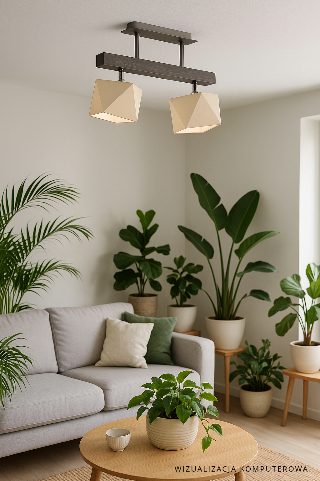 Plafon z geometrycznymi abażurami ASTIR dobrze prezentuje się we współczesnych aranżacjach. Świecąc, pięknie eksponuje dodatki, a wyłączony, tworzy z nowoczesnymi meblami harmonijną całość. Plafon drewniany ASTIR możesz zawiesić nad stołem w jadalni lub w przestronnym salonie. Nic nie stoi także na przeszkodzie, aby ASTIR oświetlał Twoją kuchnię. 3-punktowy plafon drewniany to dobre uzupełnienie także wnętrz dziecięcych czy młodzieżowych. Szukasz oświetlenia do dużego pomieszczenia? Umieść obok siebie dwie lampy sufitowe ASTIR i ciesz się przytulnym i wyraźnym światłem w dużej przestrzeni!