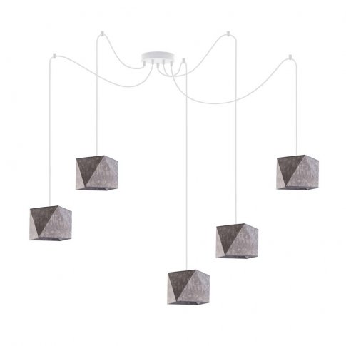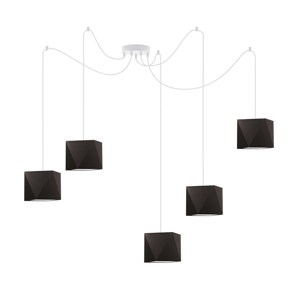 Ta pięcioramienna konstrukcja lampy wiszącej, to nie tylko praktyczne oświetlenie wnętrza, ale też niezwykle szykowny element wykończenia aranżacji. Dzięki ruchomym przewodom możemy zmieniać ułożenie ramion w zależności od naszej wizji i potrzeby. Przewody nie muszą być rozwieszone symetrycznie, wręcz przeciwnie ! Jedno ramię żyrandola może zwisać w centralnej części pokoju, inne zaś nad stołem, sofą czy stolikiem kawowym. Dzięki temu możemy dopasować kąt padania światła do indywidualnych potrzeb.