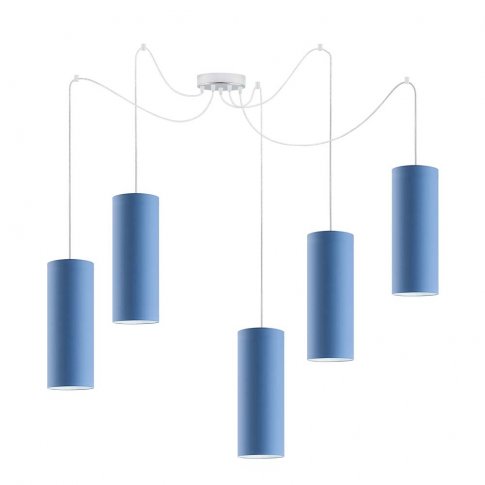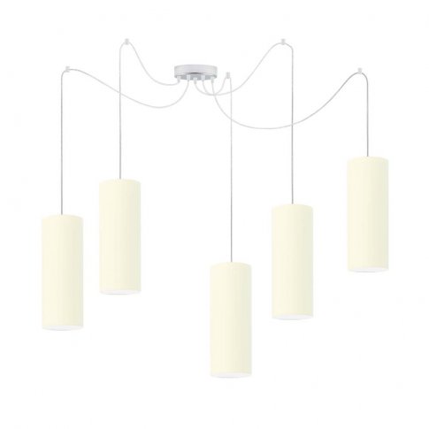 Nowoczesny żyrandol  do salonu składa się z 5 cylindrycznych abażurów w kształcie tuby o średnicy 15 cm i wysokości 35 cm pokrytych znakomitej jakości holenderską tkaniną tekstylną. Kolorystykę kloszy możemy dobierać spośród szerokiej gamy aż 18 wariantów, a stelaże dostępne są w 5 odcieniach. Tak szeroki wachlarz kolorystyczny czyni z 5-punktowej lampy pająk produkt niezwykle uniwersalny, który możesz zastosować w wielu wnętrzach o różnych stylach i przeznaczeniu. W praktycznie każdym pomieszczeniu prezentować się będzie epicko! Lampa posiada połączenie dwuobwodowe i dostosowana jest do źródeł światła o klasach energetycznych od A do G oraz żarówek LED. Posiada miejsce na 5 oprawek o mocy po 60W (każda) mocowanych na tzw. duży gwint E27. Ten elegancki żyrandol dostosowany jest także do energooszczędnych żarówek LED.