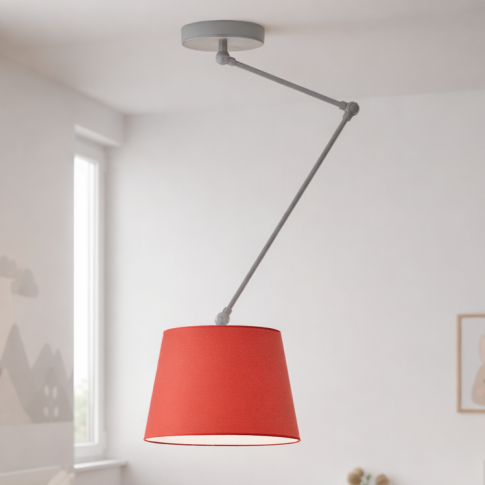 Szukając idealnej lampy wiszącej do pokoju lub kuchni warto rozważyć zakup żyrandola z regulowanym ramieniem. Taka opcja jest niezwykle przydatna, kiedy chcemy oświetlić wybraną część pomieszczenia. Lampa wisząca z regulacją kąta padania światła JUMA zachwyca swoim designem i funkcjonalnością. Regulowane ramię konstrukcji pozwala na osiągnięcie maksymalnej wysokości 100 cm. Oprócz ustawienia pionowego możemy zmieniać kąt szerokości. Stelaż plafonu sufitowego dostępny jest w 3 kolorach, a abażur oferowany jest w kilkunastu odcieniach. Kształt klosza przypomina ścięty stożek, który w najszerszym miejscu ma 37 cm. Przy zakupie określamy, czy dokupujemy denko. Jest to element maskujący dolną część lampy oraz rozpraszający światło na całą powierzchnię lampy. Polski producent oświetlenia LYSNE.PL objął ten model 24-miesięczną gwarancją. Do tej lampy regulowanej pasuje żarówka E27 o klasach energetycznych od A do G oraz żarówka LED mocowana na gwint E27.