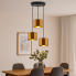 Dzięki regulowanym przewodom o maksymalnej długości 120 cm, każdy z abażurów można zawiesić na innej wysokości. Pozwala to nie tylko dopasować żyrandol do wysokości pomieszczenia, ale również stworzyć indywidualną, efektowną kompozycję świetlną. Całość wsparta jest na metalowej konstrukcji w czarnym kolorze, która gwarantuje trwałość, stabilność i elegancki wygląd.