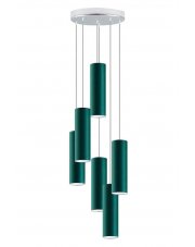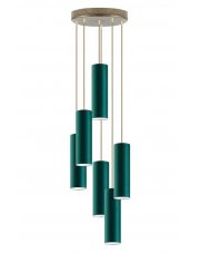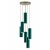 Złota lampa wisząca kaskadowa w stylu urban jungle MONACO z kloszami w kolorze zieleni butelkowej