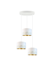 Biała lampa wisząca 3-punktowa na okrągłej podsufitce PUEBLO GLAM